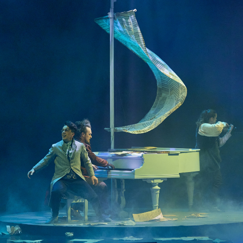 Le succès de leur premier spectacle Les Virtuoses, qui a conquis plus de 300 000 spectateurs au fil de 500 représentations, les frères Cadez reviennent avec leur nouvelle création : En pleine tempête. Pour cette nouvelle aventure, ils ouvrent les portes de leur univers à un troisième personnage, une violoniste aussi redoutable que fascinante, incarnée par Anna Gagneur. Comédie, magie et musique fusionnent dans un spectacle sans parole et unique en son genre. Alors qu’une tempête se prépare, deux pianistes se retrouvent face à une mystérieuse violoniste qui, contrainte de trouver refuge chez eux, bouleverse leur quotidien. L’étrangère souffle un vent nouveau, mettant à rude épreuve les deux compères qui rivalisent de virtuosité et de ruse pour dompter la vague qui s’annonce. Mais qui, des pianistes et de la violoniste, parviendra à imposer son tempo final ? Entre désaccords savoureux et instants de pure poésie, cet improbable trio nous emporte dans une folle épopée, aux confins de la musique et de l’imaginaire. Formés aux Conservatoires de Lille et de Lyon, les trois musiciens allient sens de l’humour et imagination débordante au service d’une musique à la fois spectaculaire et sensible. Ensemble, ils offrent un opus riche en rebondissements, où le style inimitable des Virtuoses prend une nouvelle dimension.